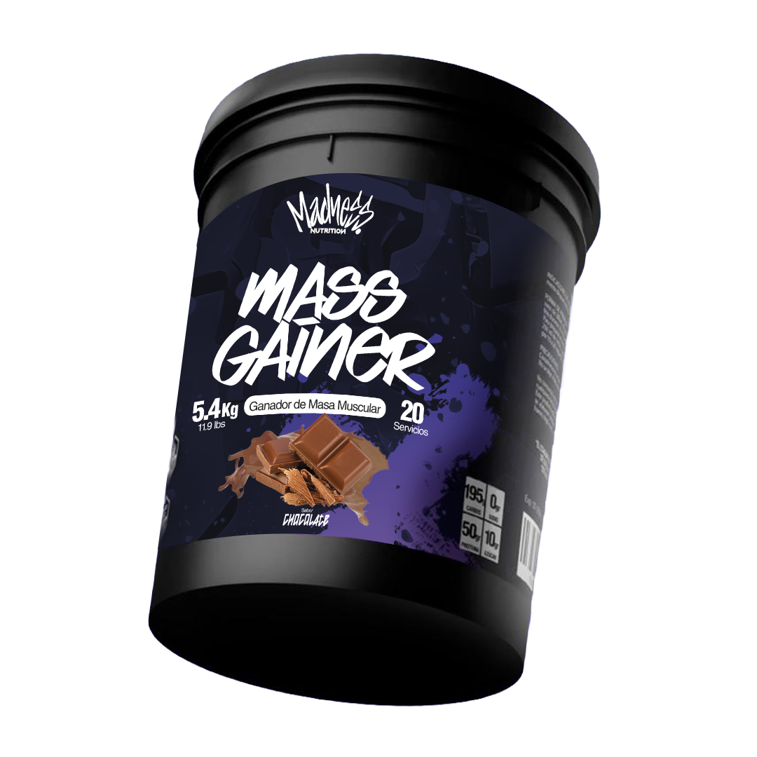 Ganador de peso de 5.4 kg con 20 servicios altos en calorías, carbohidratos y proteína para volumen muscular. Sabores: Chocolate y Fresas con crema.